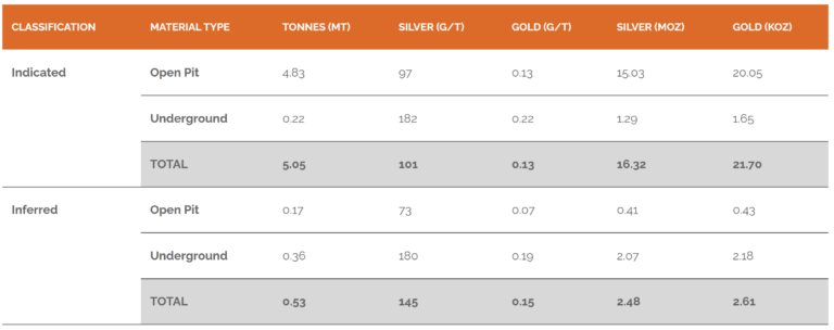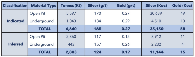 Abb. 2: Erstressourcenschätzung für Berenguela, Dezember 2022 (Quelle: Aftermath Silver Ltd.)