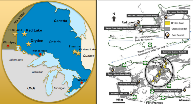 Die Region ist von Grünsteingürteln durchzogen und beinhaltet eine Vielzahl an Goldlagerstätten. In unmittelbarer Nachbarschaft befindet sich der Red Lake District, eine der renommierten Goldbergbauregion Ontarios. Die Region und die bekannten hochgradigen Goldmineralisierungen im Projekt von Dryden Gold sind insofern sehr vielversprechend.