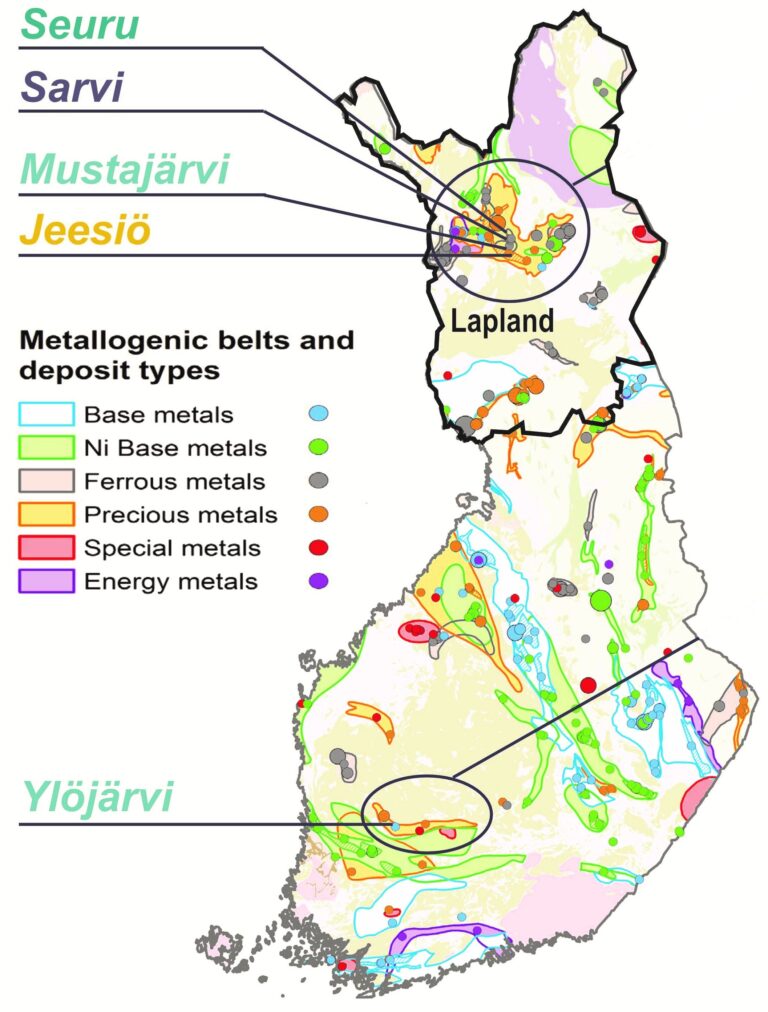 Auch im lappländischen Gürtel zeigen sich hochgradige Mineralisierungen über ein großes Gebiet hinweg, so auch in jüngsten Entdeckungen. Bislang bestehen in der Region 13 Goldlagerstätten mit enthaltenen 9,1 Mio. Unzen. Basierend darauf liegen im Gürtel historische und auch aktuell in Betrieb befindliche Minen.