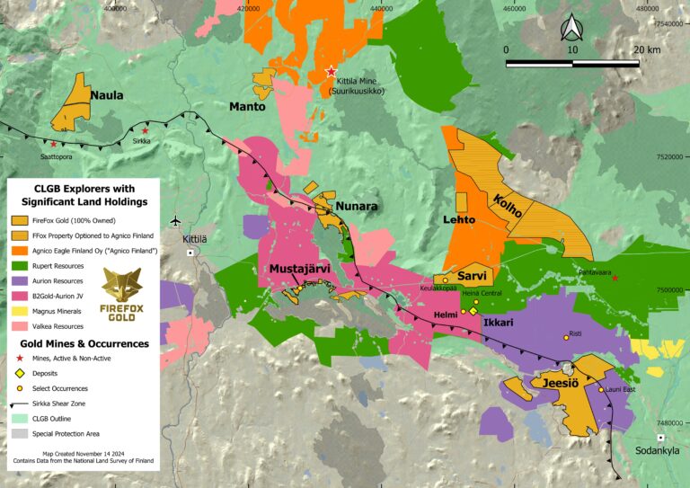 FireFox agiert in einer aufstrebenden Goldregion in Nordfinnland mit aktiven Minen und neuen Entdeckungen. Man ist einer der größten Landbesitzer im zentralen lappländischen Grünsteingürtel.