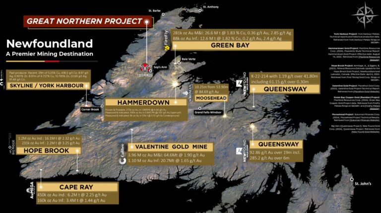 Das Great Northern Projekt befindet sich im kanadischen Neufundland in der Nähe von Sops Arm, Pollard’s Point und Jackson’s Arm in der Great Northern Peninsula. Die Great Northern Peninsula ist die größte und längste Halbinsel Neufundlands und für ihren Mineralienreichtum bekannt. Das Great Northern Projekt bietet ganzjährigen Zugang.