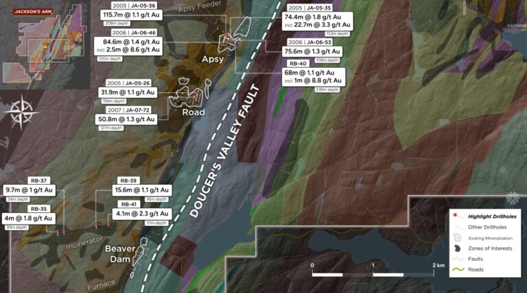 - Projekt umfasst langen Abschnitt (Streichlänge: 49,2 Kilometer) der goldreichen Doucers Valley Fault am Tier-1-Standort Neufundland.