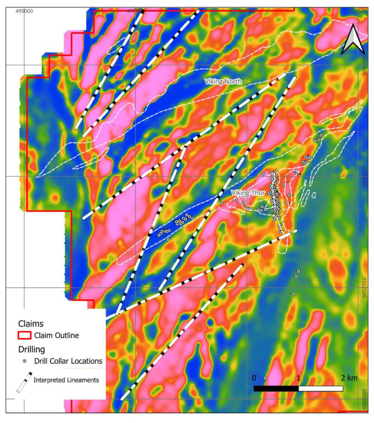 Erste vertikale abgeleitete magnetische Daten zu Thor zeigen parallele strukturelle Trends, die sich nach Nordosten verbinden. Strukturen verlaufen parallel zu Viking-Zonen. Dadurch konnten Bohrziele definiert werden.