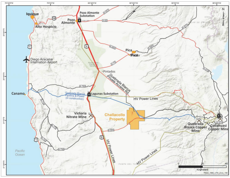 Das Projekt Challacollo befindet sich in der Region Tarapacá im Norden Chiles, rund 130 Kilometer südöstlich von Iquique. Das Gebiet liegt in einer Region mit erstklassiger Bergbauinfrastruktur – nahe wichtiger Minenstraßen, Stromleitungen und bestehender Bergbauzentren.