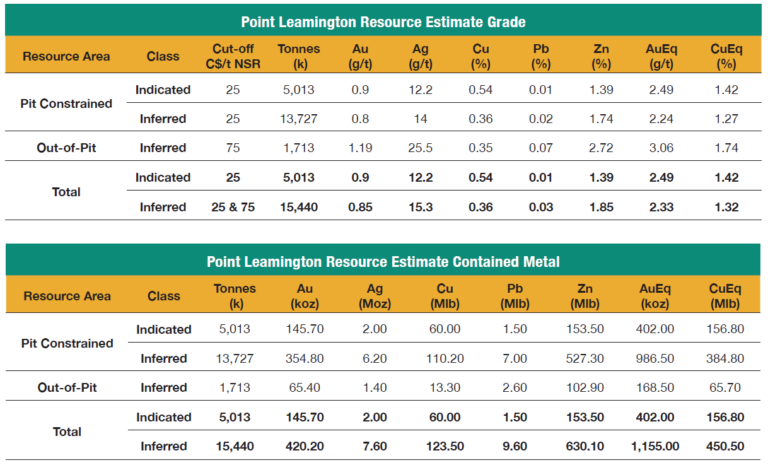 Die Geschichte des Projekts Point Leamington zeigt, wie viel Potenzial in dem VMS-System noch steckt. Seit der Entdeckung 1971 wurde über mehrere Betreiber hinweg ein großer Teil der heutigen Datenbasis aufgebaut. Visionary Copper & Gold übernahm das Projekt im Jahr 2016 und aktualisierte 2021 die bestehende Ressourcenschätzung. Diese umfasst oberflächennahe Gold-, Zink- und Kupfergehalte, die für ein künftiges Tagebau- wie auch Untertagebaukonzept relevant sind.
